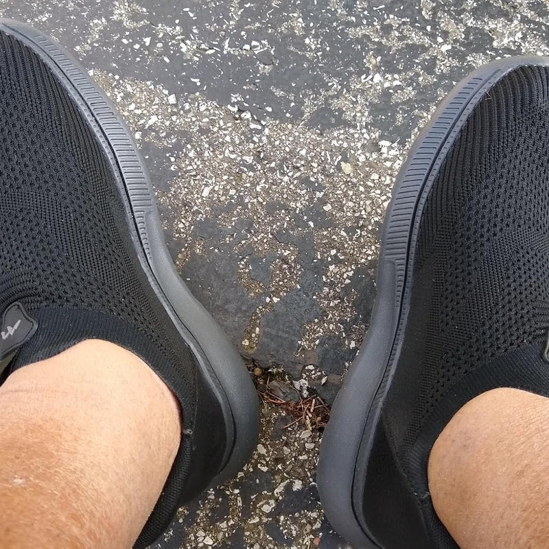 他の靴では足が窮屈で蒸れてしまいましたが、 この靴は幅広でゆったりしていて足がリラックスできます。 軽くて柔らかい履き心地で、一日中快適に歩けます。